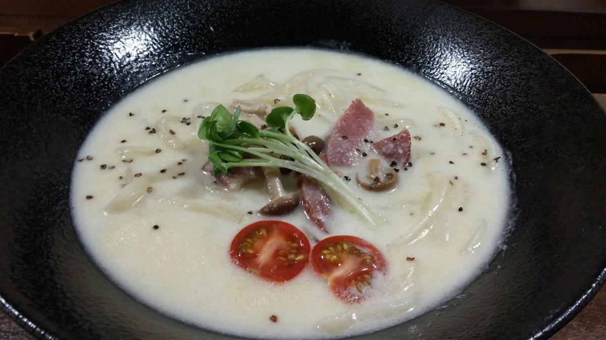 おしながき トップページ おしながき 「麺の量」 大盛り +50円 600g中盛り +50円 450g普通 300g小盛り -50円 200g ▲ページトップへ 「オリジナルうどん」 海鮮塩うどん(温) 950円 塩味のかけつゆに、エビ・ボイルホタテ、ムール貝のトッピングをしたオシャレな一品。仕上げにラー油を少々。 鶏チャーシューのトマトつけ麺(冷) 900円 ピリッとした辛みとトマトの酸味の効いたトマトベースを当店のお出汁で割った特製のトマトスープで味わって頂けます。 海老天トマトつけ麺(冷) 1,200円 トマトつけ麺に海老天を2尾トッピングしたボリューム満点の一品。 鶏チャーシューのトマトうどん(温) 900円 ピリッとした辛味とトマトの酸味の効いたさっぱりつゆにサラダと粉末チーズ・低温調理でしっとり柔らかに仕上げた鶏むね肉のチャーシューをトッピングしたうどんです。 海老天トマトうどん(温) 1200円 トマトうどんに海老天を2尾トッピングしたボリューム満点の一品。 きのことベーコンのクリームソースうどん(温) 900円 生クリームと牛乳・バター等で作ったホワイトソースを当店のお出汁で割ったクリームソースで煮込んだオリジナルのおうどん。ベーコン・きのこをトッピング。黒胡椒でアクセントをつけて。 スパイシー黒胡麻うどん 950円 ピリッと辛い黒胡麻の冷たいおうどんです。癖になる辛さを是非! 豚バラネギソースの冷かけ 950円 茹でた豚バラにしょうがの風味の効いたネギソースをかけ、更にたっぷりのねぎをトッピング。さっぱりおいしい一品。 ※海老と野菜天ぷら・かき揚げは、+250円でどのおうどんにもお付け出来ます。 ▲ページトップへ 「レギュラーうどん」 かけうどん(温) 600円 オーソドックスなうどんです。出汁の味・香りを楽しんで頂くのに最適です。 きつねうどん(温) 800円 当店自慢の特大お揚げを甘辛くじっくり煮て味を染みこませています。麺が見えない程の大きなお揚げを是非一度ご照覧あれ。 肉うどん(温) 800円 甘辛く煮た牛肉と玉ねぎ・白ネギをトッピングしたかけうどんです。がっつり食べたい方におすすめ。 釜揚げうどん(温) 600円 茹でた麺を冷水でしめずに湯で汁に浸してそのまま提供しますので、もちもちの食感と麺の味・小麦の風味を最も堪能できるおうどんです。 釜玉うどん(温) 650円 卵かけご飯ならぬ卵かけうどん!釜揚げうどんに生卵を乗せるので、だし醤油をかけて混ぜて頂くと半熟状態の卵がからんでおいしさUP。 肉汁釜揚げ(温) 850円 豚肉と野菜入りのつけツユで味わう釜揚げうどん。具材とおうどんとほんのり生姜の効いたおつゆをお楽しみ下さい。 生醤油うどん(冷) 600円 冷水でしめたうどんにだし醤油をかけてお召し上がり下さい。麺のつるんとした食感とコシがダイレクトに感じられる、まさに麺を楽しむうどんです。 ぶっかけうどん(冷) 600円 生醤油同様に麺を楽しめるうどんですが、こちらは少し甘めのぶっかけ用ツユを添えております。レモンをしぼっていただくとより一層おいしいですよ。 ざるうどん(冷) 600円 冷たいおうどんでは最もオーソドックスな一品。つけつゆでつるっと食べやすい。 肉汁つけ麺(冷) 850円 豚肉と野菜入りのつけツユで味わうざるうどん。具材とおうどんとほんのり生姜の効いたおつゆをお楽しみ下さい。 オリジナルカレーうどん 900円 数種類のスパイスを使用し、ココナッツミルクや生クリームでマイルドに仕上げました。鶏肉を4時間じっくりと煮込んでかけつゆで割った特製カレーうどんを是非お試し下さい。 ※海老と野菜天ぷら・かき揚げは、+250円でどのおうどんにもお付け出来ます。 ▲ページトップへ 「天ぷら」 海老天ぷら 200円 半熟卵天ぷら 100円 野菜天盛り合わせ 400円 ▲ページトップへ 「一品」 唐揚げ(4個) 400円 豚角煮 400円 生卵 50円 白身魚と野菜南蛮漬け 400円 自家製牛乳プリン 100円 ▲ページトップへ 「飯物」 ライス 120円 おにぎり(梅・鮭・昆布) 各120円 親子丼 650円 天丼 650円 ※ご飯大盛りは+100円 ▲ページトップへ 「お飲み物」 ウーロン茶 100円 ビンビール中瓶 550円 ビンビール小瓶 450円 ノンアルコールビール 350円 レモンチューハイ 400円 ▲ページトップへ 「ランチメニュー」 ▲ページトップへ 「お子様メニュー」 お子様うどん 250円 エビ天ぷらと海苔天ぷらのついた小うどんです。 お子様セット 500円 ・からあげ・サラダ・ポテト・ジュース・牛乳プリン・お子様うどん ▲ページトップへ