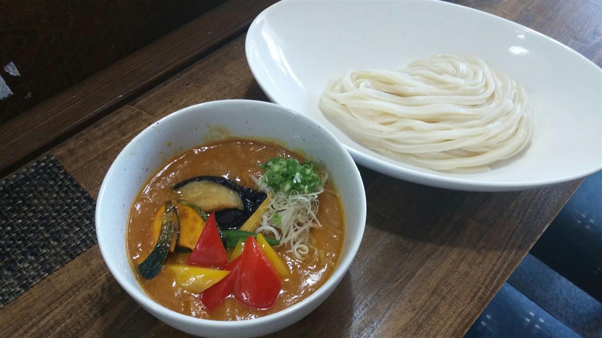 たっぷり夏野菜入りのカレーをつけ麺でお楽しみ頂けます。