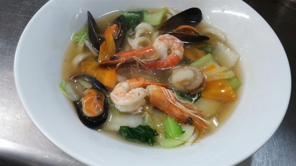 期間限定。海鮮あんかけうどん&チキントマト煮込み
