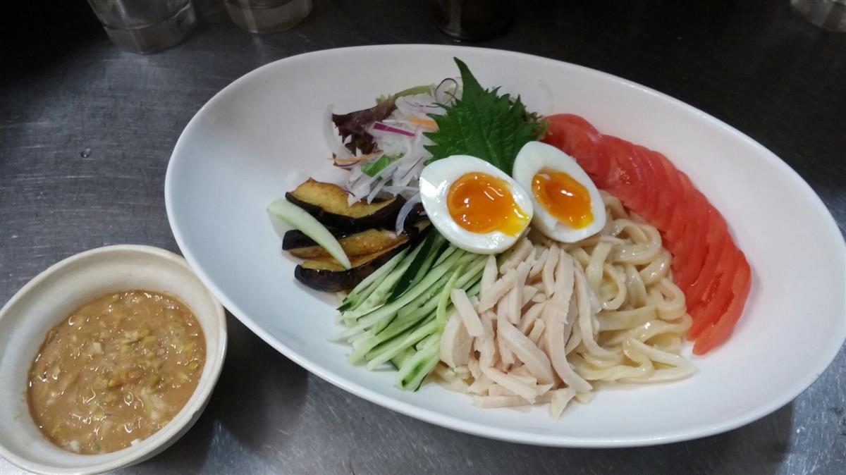 今月の期間限定メニューは「棒々鶏サラダうどん」です。